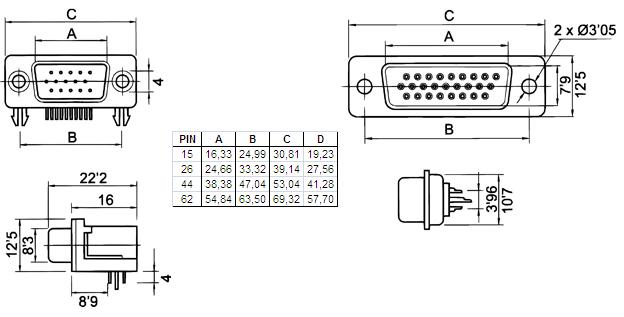 Conector Sub-D de alta densidad para soldar cable, macho de 26 pines, 50D26PAD.