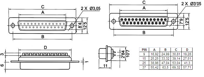 Conector Sub-D para soldar cable, macho de 9 pines, 50D9P.