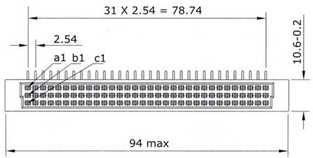 Conector DIN 41612 ½R hembra-codo para PCB, de 48 pines
