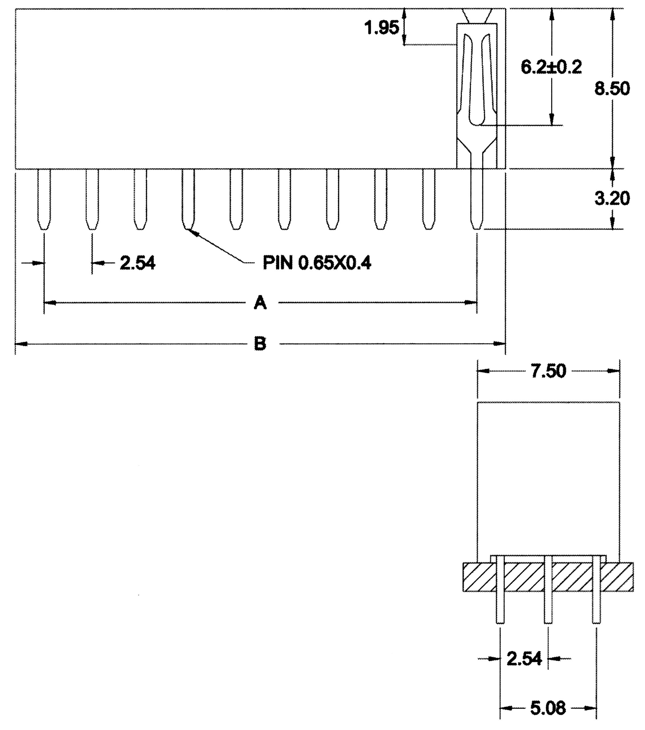 Tira de pines hembra, 3×11 pin plano, paso 2.54mm, 54BASE311D.