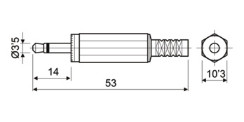 Conector Jack macho-mono de 3.5mm, carcasa de plástico.