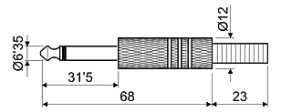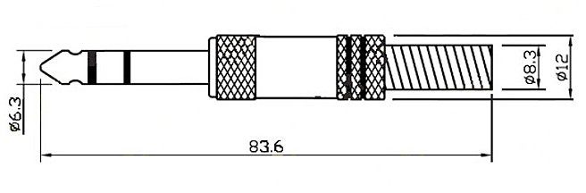Conector Jack macho-estereo de 6.3mm, carcasa metálica.