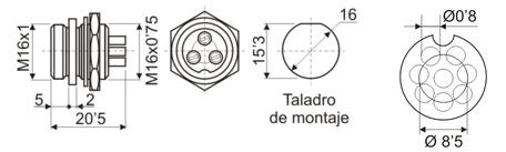Conector Micrófono macho-panel, 8 contactos.