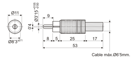 Conector RCA macho-niquelado, con anilla roja.