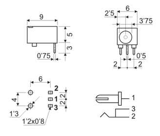 Base de alimentación miniatura para PCB, 3.75mm, Ø interior=1.3mm.