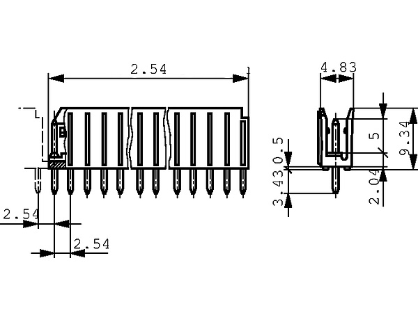 Conector sistema Dubox para PCB, recto 1×13 pines, paso 2.54