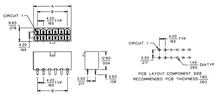 Conector Minifit macho-recto, 2×12 vías, paso=4.20mm.