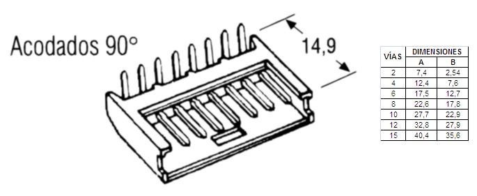 Conector AMP Modu II macho-codo para PCB, 4 vías, paso=2.54mm.