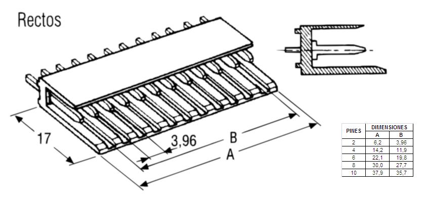 Conector AMP Modu II macho-recto para PCB, 4 vías, paso=3.96mm.