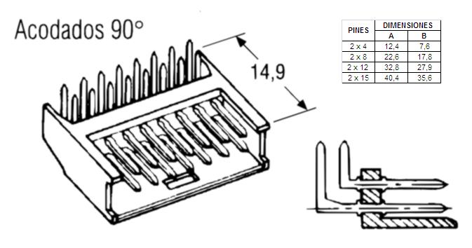 Conector AMP Modu II macho-codo para PCB, 2×8 vías, paso=2.54mm.