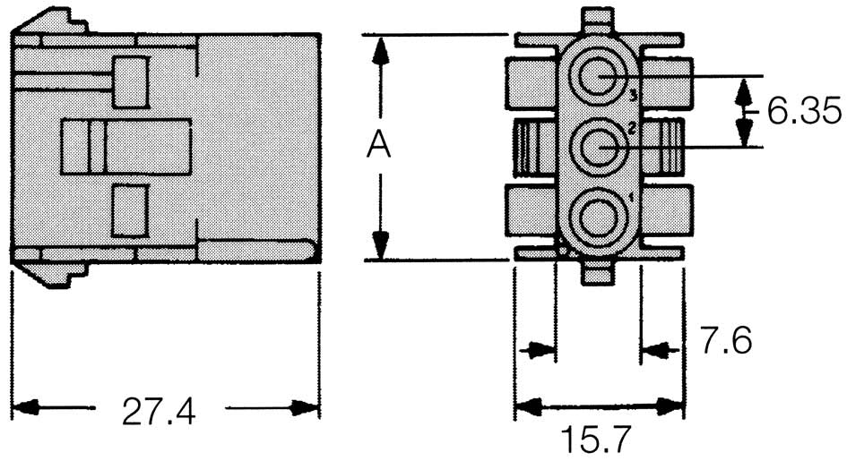 Conector MATE-N-LOK macho-aérea, 3 vías, caja tipo B.
