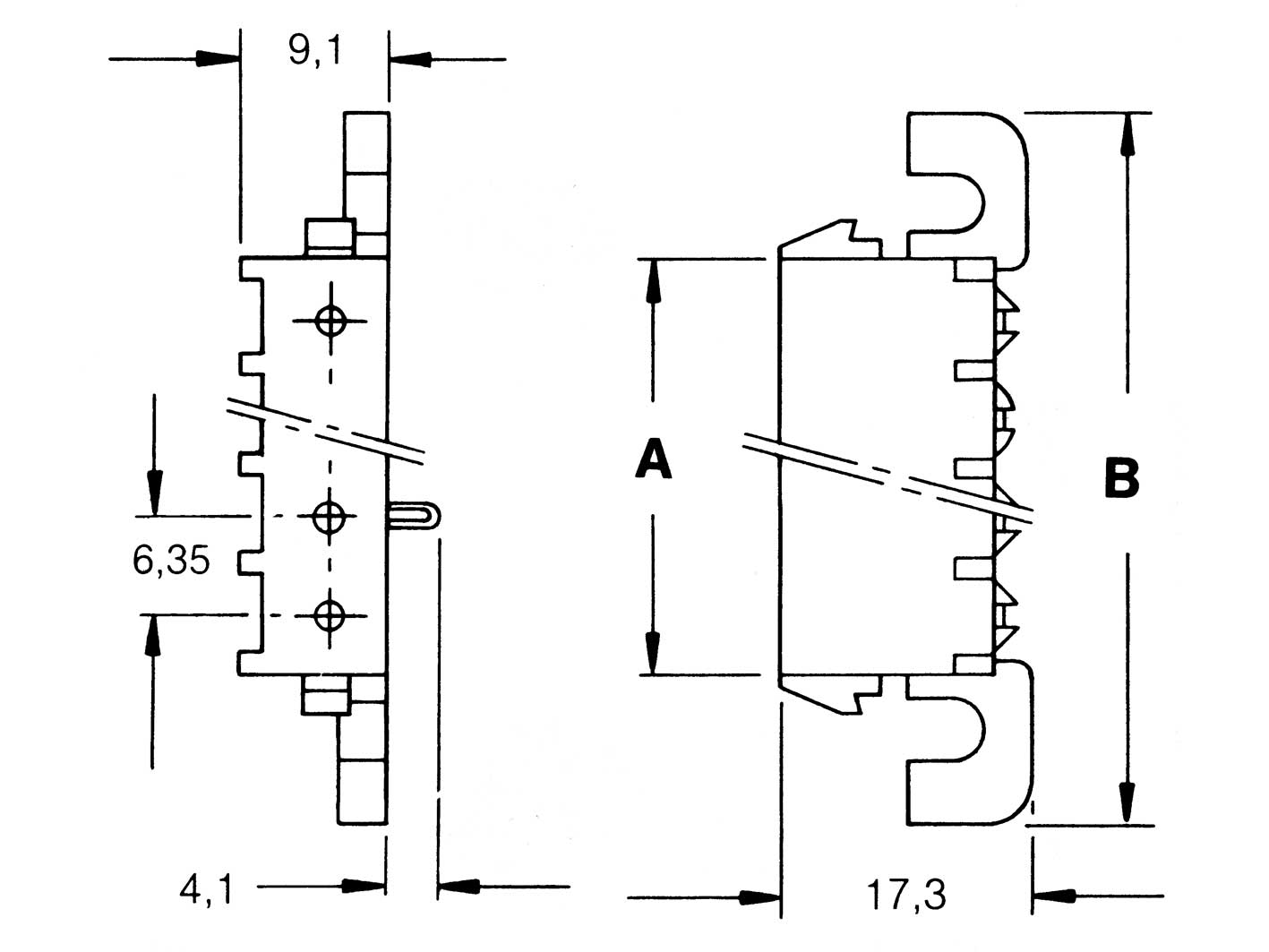 Conector MATE-N-LOK macho-acodado para PCB, 4 vías.