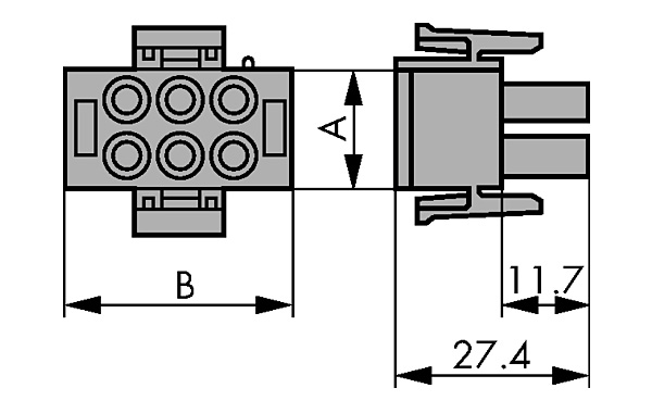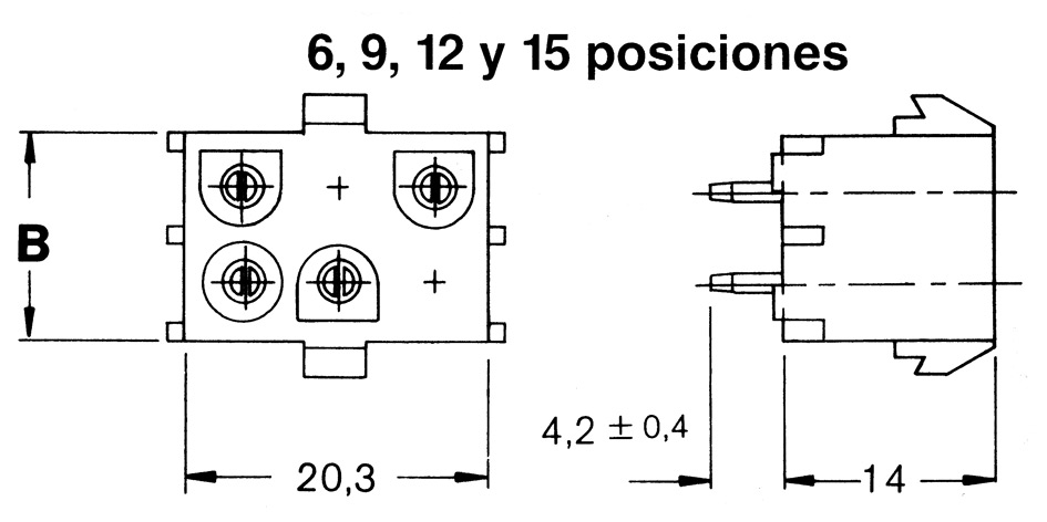 Conector MATE-N-LOK hembra-aérea, caja A, 9 vías.