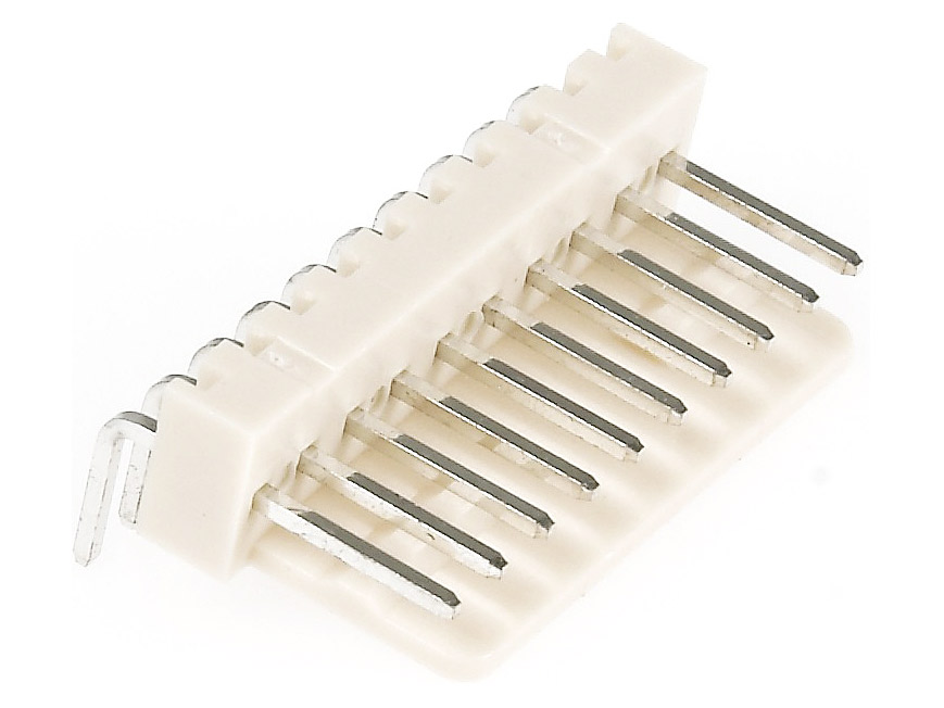 Conector postes polarizado macho-codo, 10 vías, paso=2.54mm