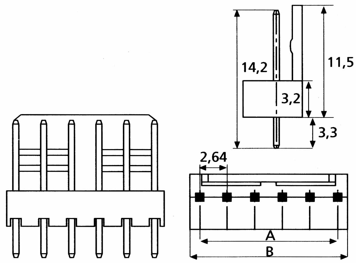 Conector postes polarizado macho-recto, 13 vías, paso=2.54mm