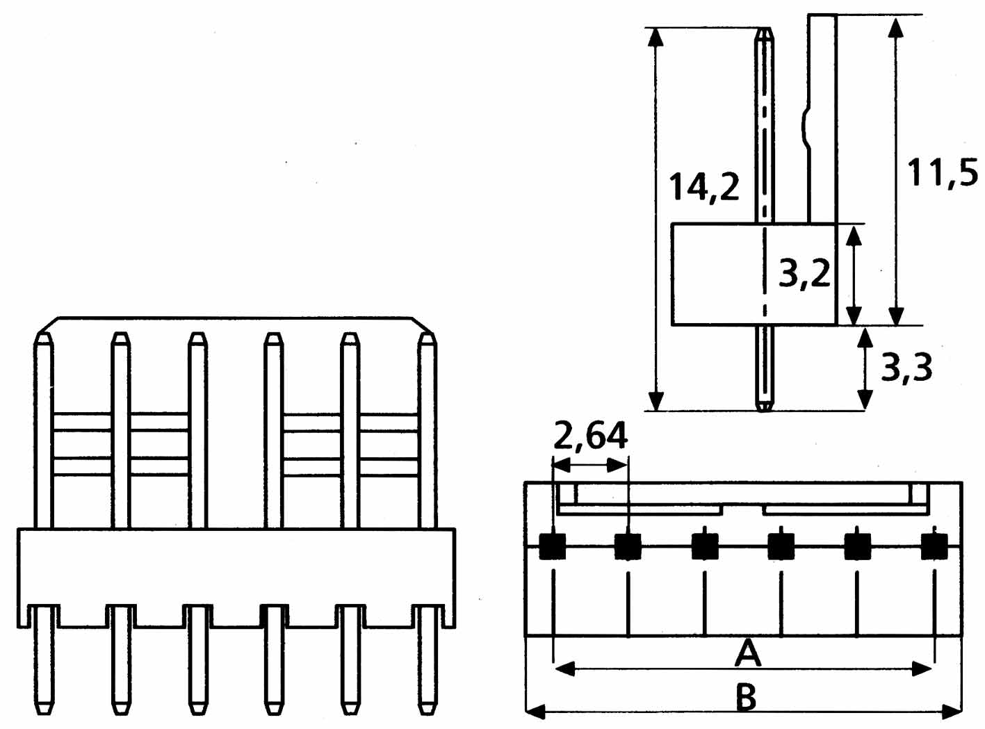 Conector postes polarizado macho-recto, 15 vías, paso=2.54mm