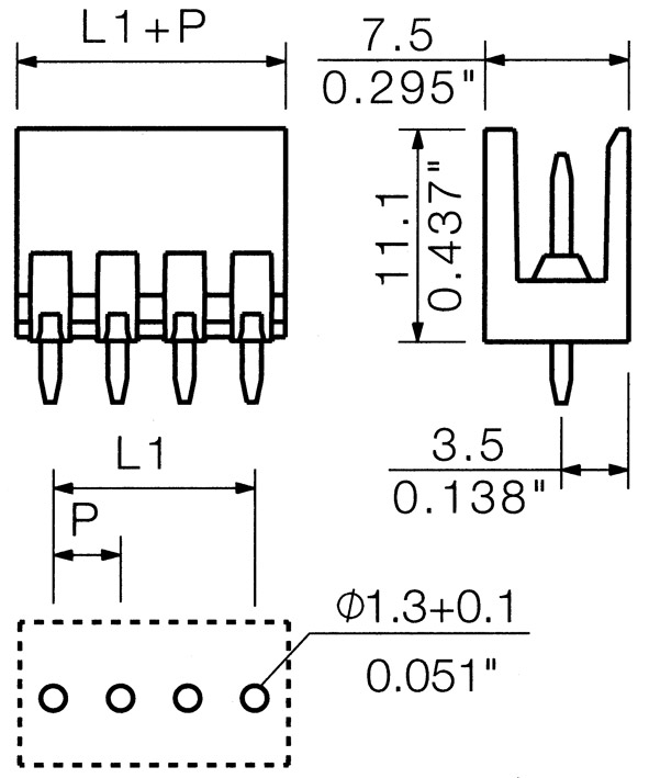 Borna macho-recta para PCB, 3 vías, paso=3.50mm, 56P350R3%1, MCV 1.5/3-G-3.5 PHOENIX.