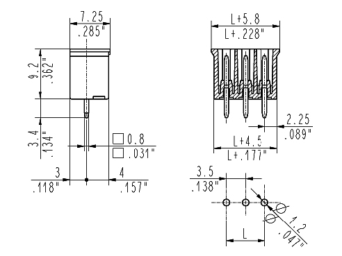 Borna macho-recto para PCB, 3 vías, paso=3.81 mm, verde, enchufable.