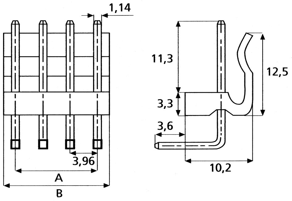 Conector tipo postes macho-codo para PCB, 8 vías, paso=3.96mm.