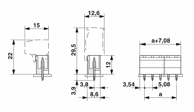 Borna macho-recto para PCB, 3 vías, paso=5.08mm. Referencia fabricante: MSTBVA2.5/2G-508 1755736