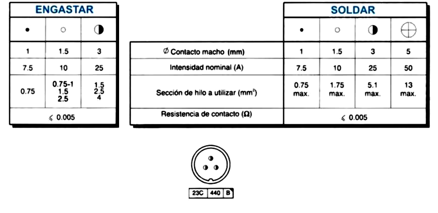 Conector circular metálico hembra-base para panel, tipo militar, de 3 vías, Ø=20mm.