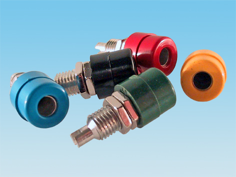Hembrilla para panel Ø=10mm, espesor panel hasta 2mm, para banana de 4mm, color azul.