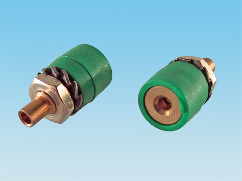 Hembrilla para panel Ø=8mm, para banana de 2mm, color verde.