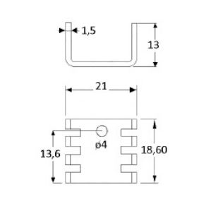 Disipador anodizado negro para TO-220, longitud 18,6 mm, Rt ºC/W = 35