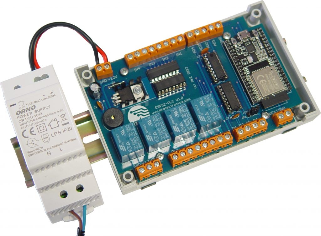 El ESP32-PLC es un controlador lógico programable diseñado para aplicaciones de automatización y proyectos de Internet de las Cosas (IoT). Está basado en el módulo ESP32-DevKitC, lo que permite aprovechar toda la potencia del microcontrolador ESP32, incluyendo conectividad WiFi y Bluetooth, así como un amplio conjunto de interfaces de entrada y salida.