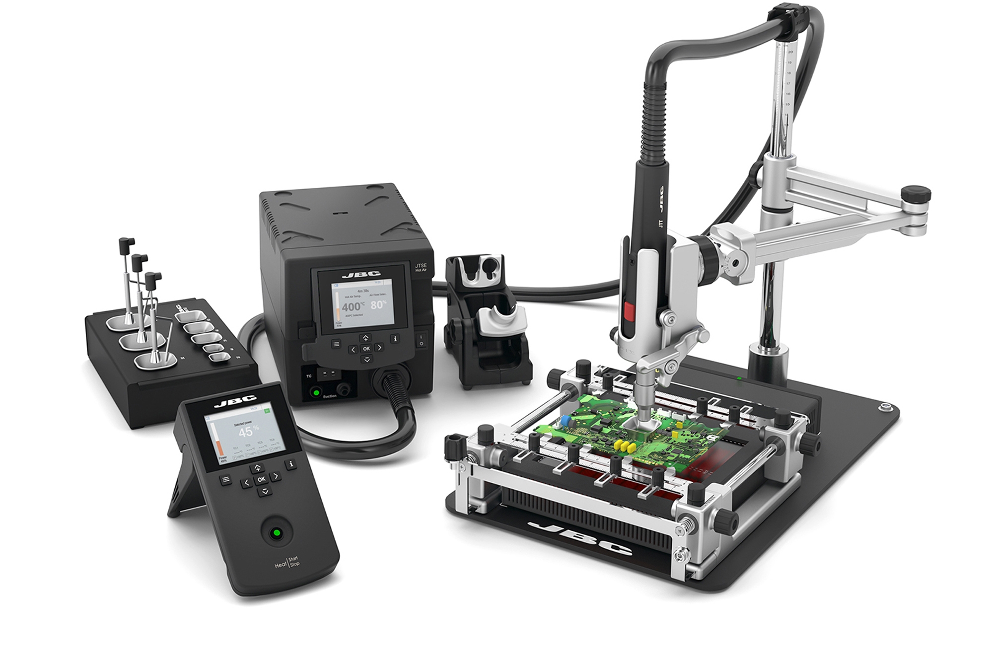 Sistema JBC completo para retrabajo SMD con control térmico y operación manos libres