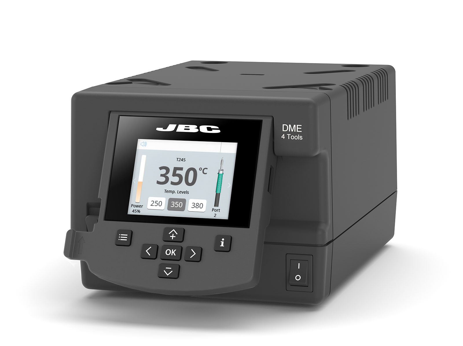 La unidad control JBC DME para cuatro herramientas está pensada para entornos técnicos y productivos en los que se necesita trabajar con varias herramientas de forma simultánea. Gracias a esta arquitectura multicanal, esta unidad de soldadura profesional JBC permite gestionar procesos de soldadura y desoldadura con mayor agilidad, algo especialmente útil en contextos de soldadura industrial JBC y producción electrónica avanzada.